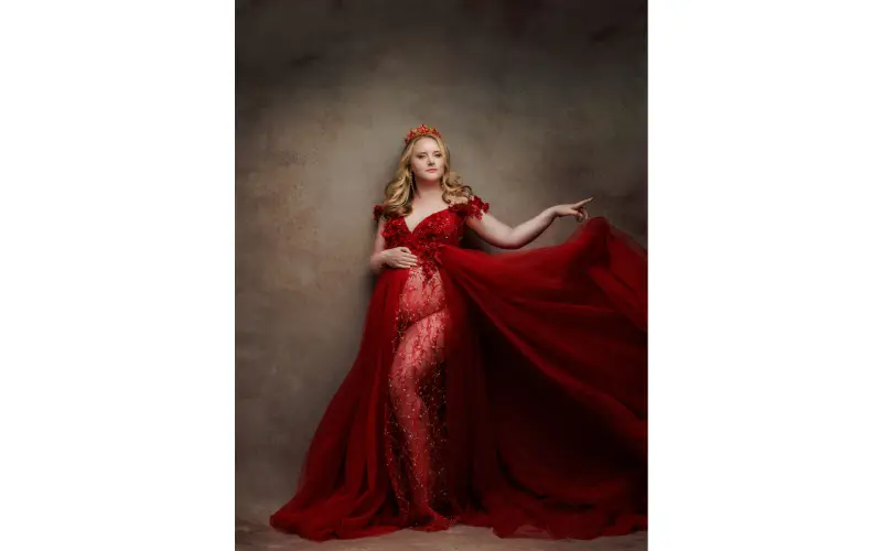 Soft fabrics like chiffon, silk, or lace look stunning under soft lighting. These materials naturally catch light, and when paired with a gentle light source, they create a soft glow that enhances the femininity and grace of the subject. Flowing dresses are particularly popular in maternity shoots as they emphasize the curves of the body while adding a sense of movement. Whether the light source is natural or artificial, it will bring out the best in these fabrics, creating an ethereal and romantic feel.